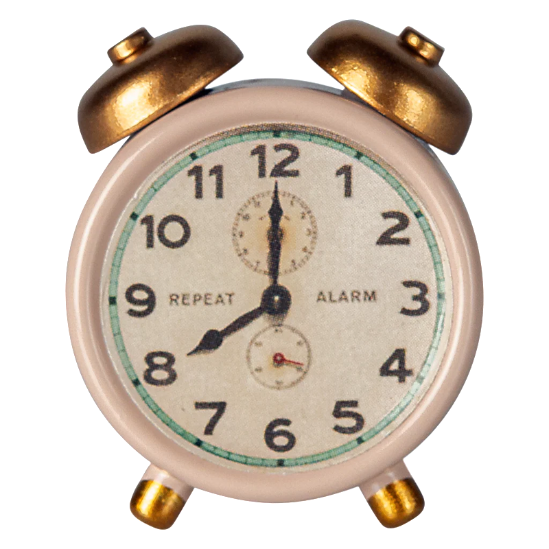 The bell rings and a new day of adventures starts. The small alarm clock is made in metal and with lots of small details.