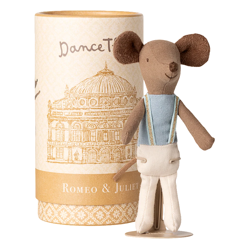 A real ballet dancer. The mouse comes in a beautiful tube with a stand inside you can use if you want to display the dancer at home.