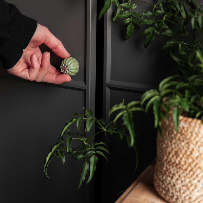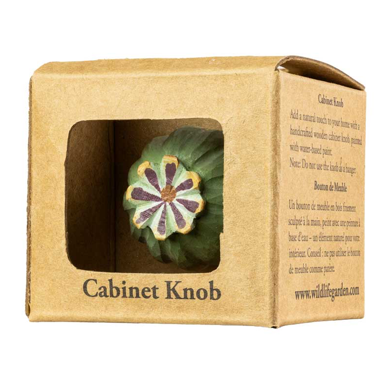 Wildlife GardenThis sculptural cabinet knob is carved from solid wood and shaped like a poppy pod. Hand-painted and full of character, it brings new life to drawers and cupboards alike. Thanks to its rounded shape and distinctive crown-like top, you can easily spot a poppy pod. Often dried for decorative use, it contains the seeds that grow into new flowers.
