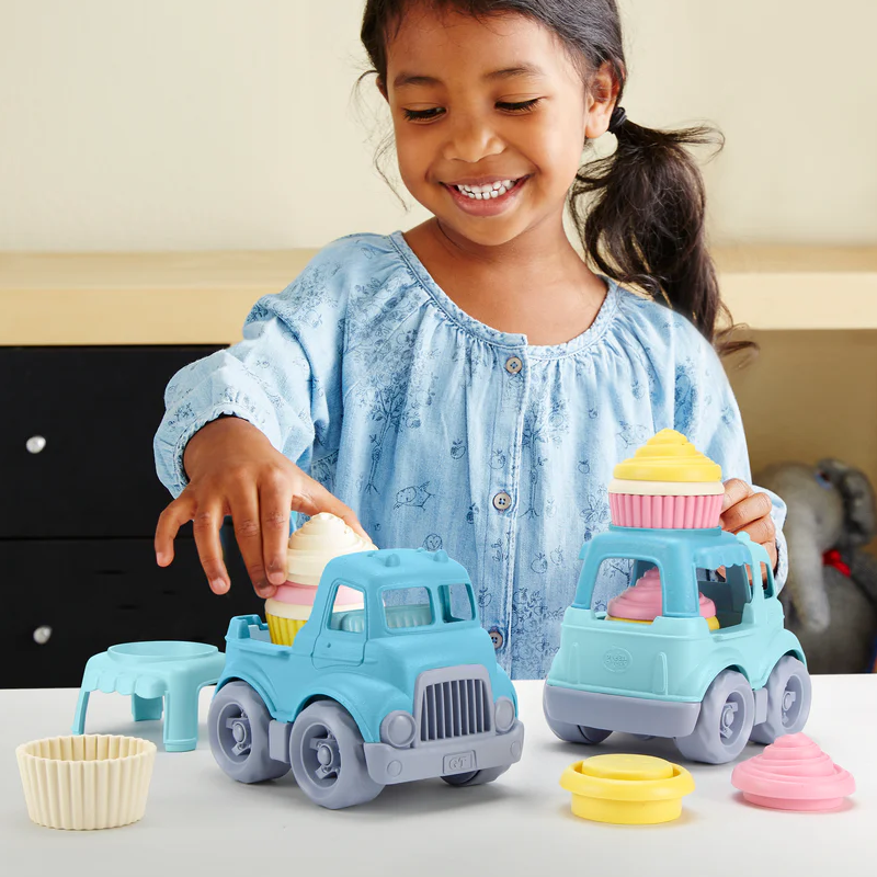 GreenToys inside-out, Inside-OutThis 8 piece mix-and-match set includes a Cupcake Truck with removable canopy tray, and frosting, cakes, and cupcake liners for 2 complete cupcakes. The truck holds a cupcake in the back bed, and another cupcake on the roof – which doubles as a serving tray and is perfect for presentation and storage.