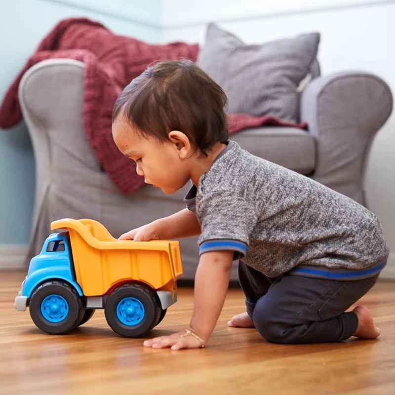 green toys dump truck, blue/orange