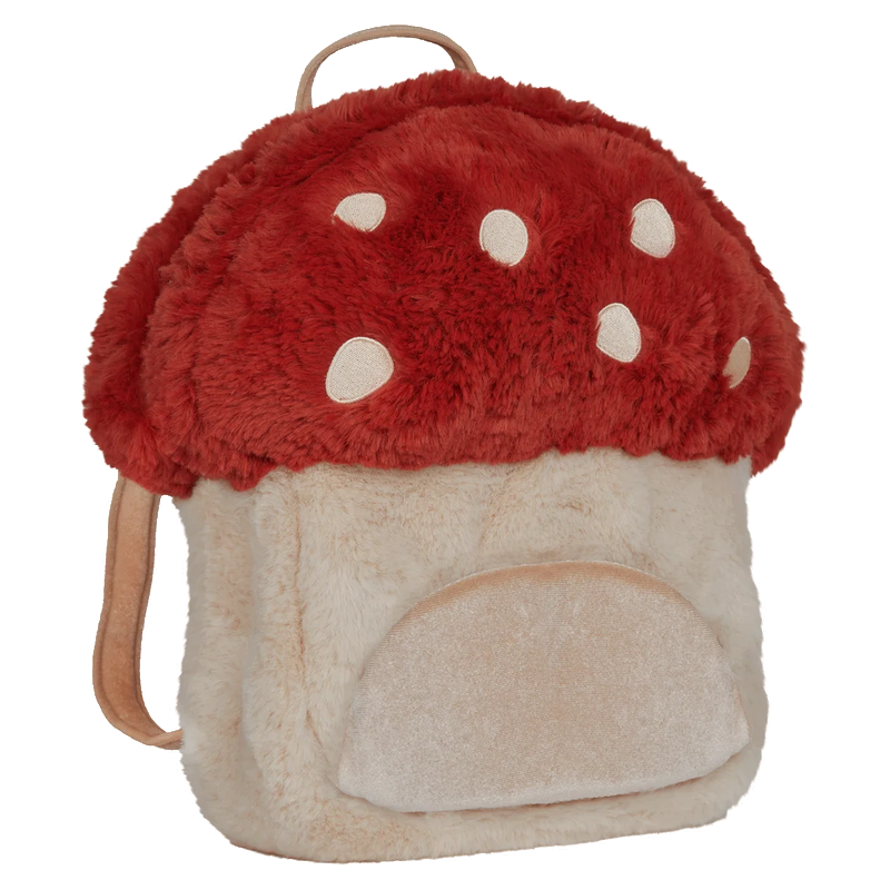 Olli Ella childrens rooms, Olli Ella ImagineEveryday adventures can feel like they’re straight from a fairy tale with the Hopalong Mushroom Backpack in Red. Perfect for little dreamers, this fluffy, mushroom-shaped bag features a soft cream-coloured bottom half and a vibrant red top, adorned with shimmering embroidered spots, just like a fairy-tale toadstool!