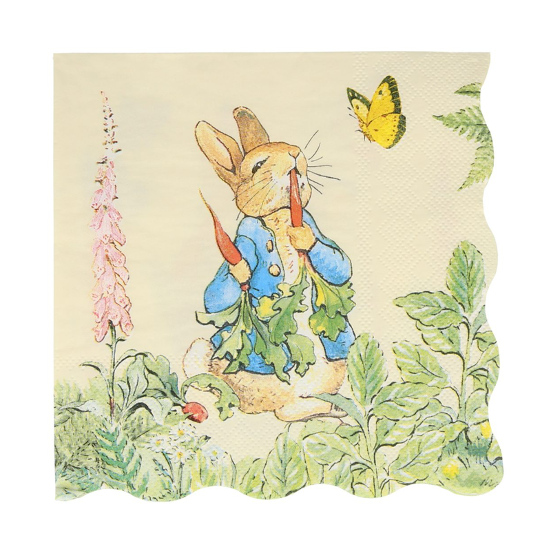 Easter Party, Meri Meri Birthday party, New born partyThis iconic vintage design of the delightful Peter Rabbit munching on radishes will delight your party guests. The scalloped border on these large napkins adds a stylish finishing touch.