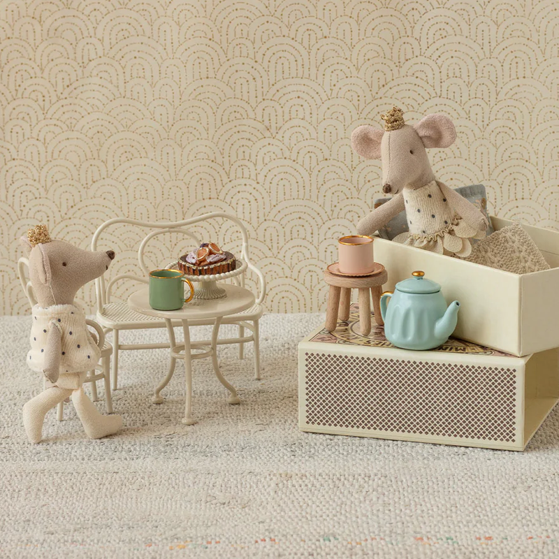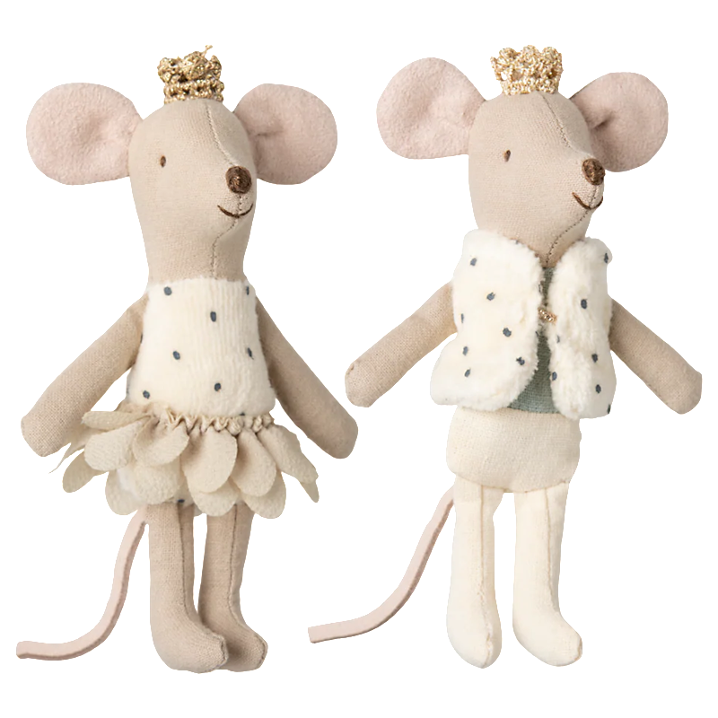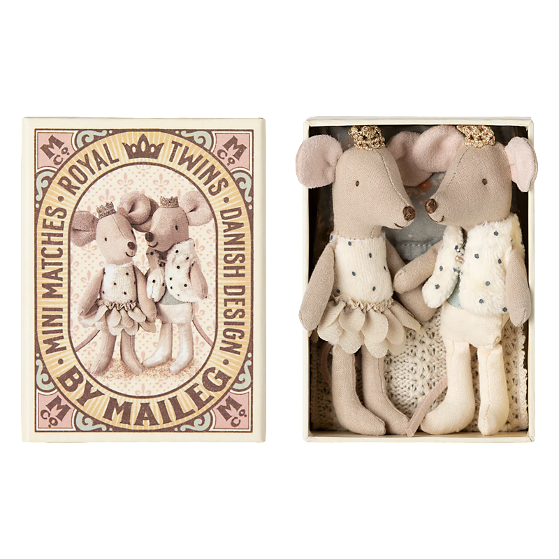 Little Brother & Sister, Maileg Childrens rooms, MiceThe royal twin mice is a set of a small princess and prince. They wear golden crowns and beautiful clothes. They sleep in a lovely decorated matchbox with a picture of themselves on the front. Inside the box you find the softest beddings.