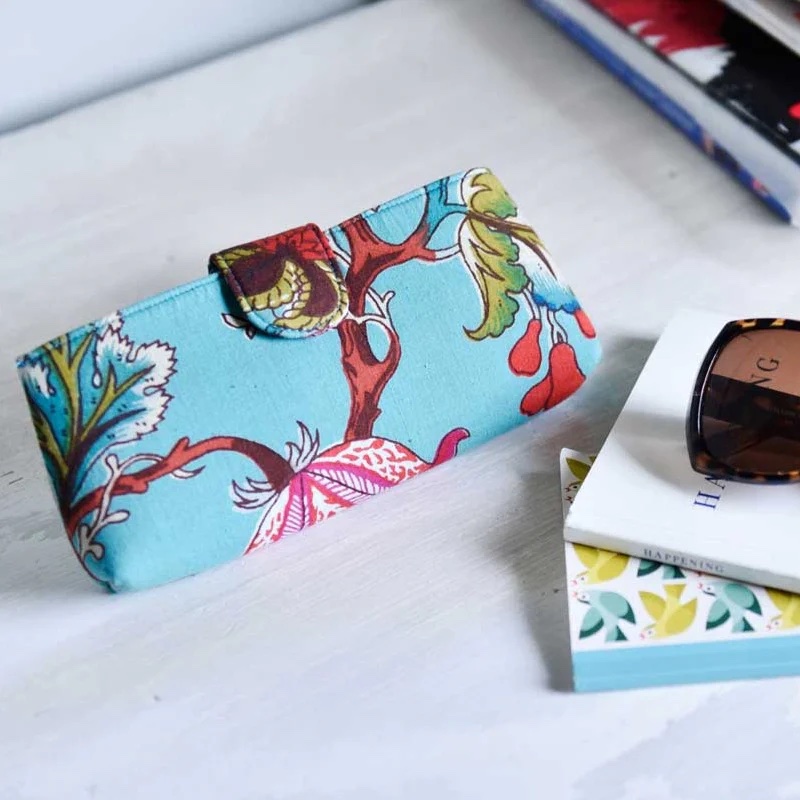 Powell CraftKeep glasses or sunglasses safe from scratches or damage with this padded glasses case which is perfect for popping into a bag or pocket. Made from 100% cotton in a bright floral print – multi-coloured exotic flowers and foliage are depicted against a vivid teal background, the case closes with a tab and a popper. Makes a thoughtful and useful gift!